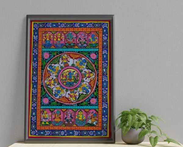 Traditional Pattachitra Painting of Shri Krishna and Dasavatara Hand Painted on Cotton Canvas by Authentic Pattachitra Artist of Odisha.
