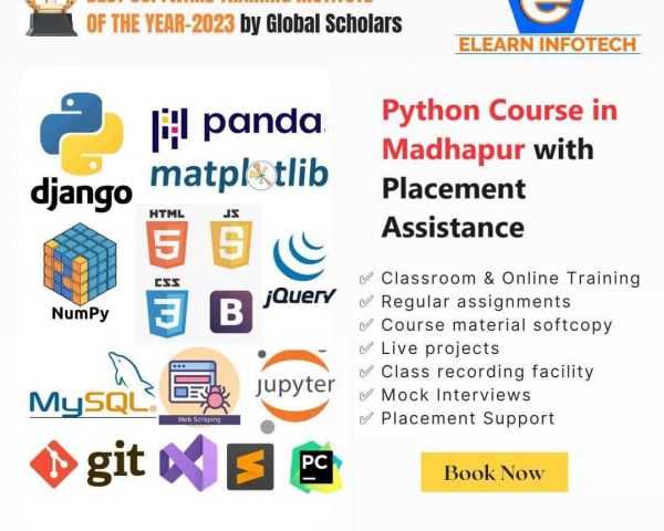 Embark on a Python journey with ELearn Infotech in Madhapur! Our expert-led course comes with placement assistance, ensuring you're job-ready. Whether you're a beginner or looking to enhance your skills, our seasoned instructors will guide you every step of the way. Don't miss out on this opportunity to excel in Python and secure your future in tech. Enroll now!