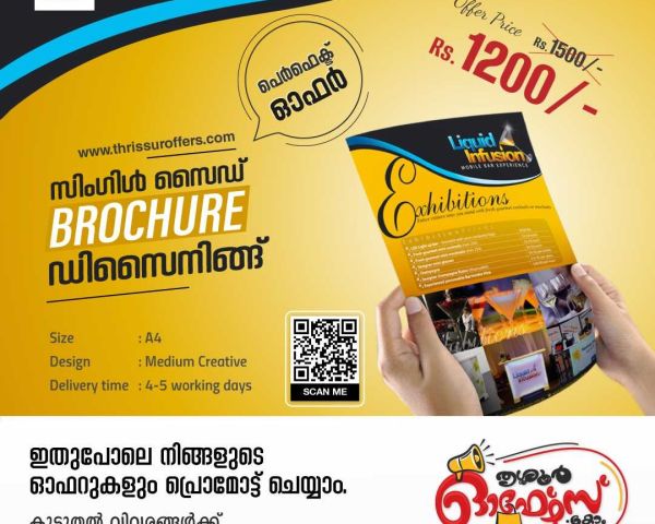 Fascinating deal in Thrissur. Get a professionally designed single-sided brochure for just ?1200, down from ?1500 originally. Elevate your business with our creative designs. Transform your brand today with this unbeatable discount on professional brochure design.