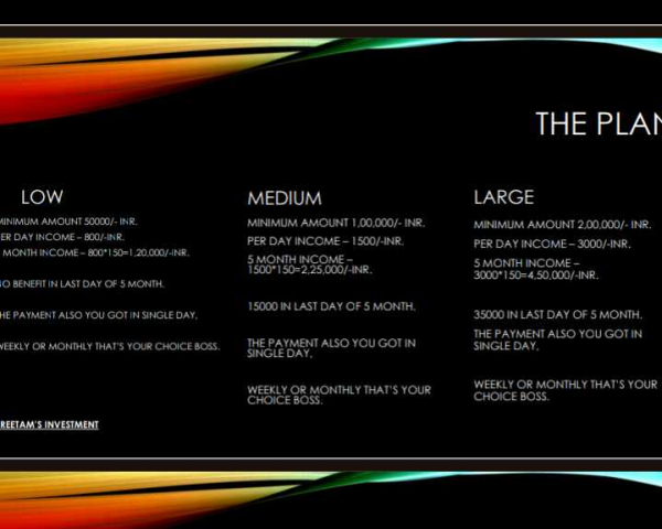 We are company who build through trust and we are make people lower middle class to middle class that's our motive