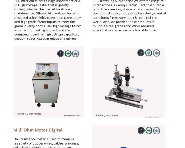 The Resistance meter is used to measure resistivity of copper wires, cables, windings, coils, heater elements, switches, relays The resistance meter is suitable for the measurement of resistivity of copper wires from 16 SWG to 50 SWG, resistance of cables, windings, coils, heater elements and contact resistance of switches, relays etc. The instrument uses 4 terminal measurement system so that resistance of test leads and contacts is eleminiated from test results. Actual value of resistor is directly displayed on seven segment 0.5 LED numerals