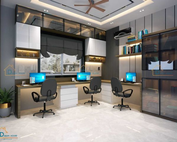 Transform your office into a sleek and efficient environment with the expert touch of Dream House Makerz. Located in Gwalior, Madhya Pradesh, this office interior reflects smart design and functionality. As the best Indian interior designer, we offer online services including elevation design, interior solutions, floor plans, and more to enhance your space with style and purpose.