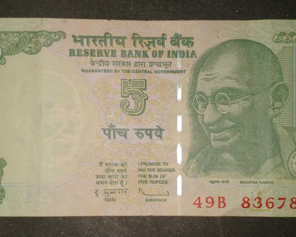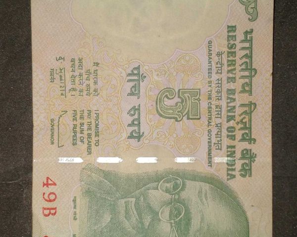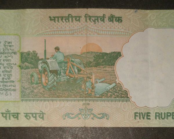 Rs. 5/- note with tractor on one side and holy muslim number 786 on the other side