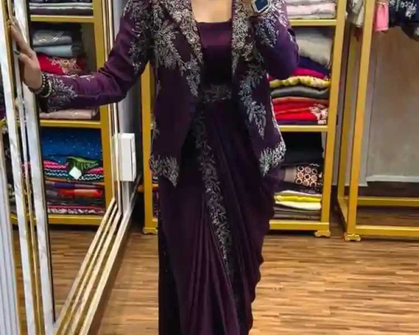 Ready to Wear Saree Step into effortless elegance with this super trending Ready to Wear Saree, designed with stunning embroidery sequence work and a stylish full koti jacket. Crafted for women who love traditional charm with modern convenience, this saree offers a graceful look without the hassle of draping. Made from heavy chinon fabric, the saree features rich embroidery that adds a premium finish. The fully stitched jacket with embroidery sequence work and the matching blouse in heavy chinon complete the ensemble beautifully. An elegant fully stitched embroidery belt enhances the silhouette, making it perfect for festive occasions, weddings, and celebrations. Lightweight at 1 kg, this saree delivers supreme quality at an attractive price of ?1499, with free shipping in Gujarat. ?